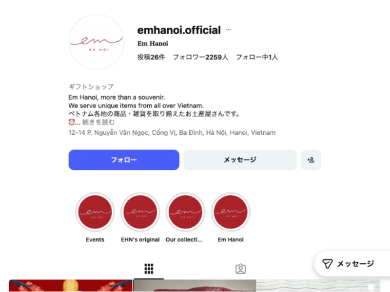 現在、Em Hanoiはベトナムの首都ハノイに、その世界観を体現した美しい実店舗を構えています。しかし、一般的なグローバルブランドとは異なり、公式の多言語ECサイト(ネットショップ)は現時点では構築されていません。そのため、世界中のファンにとっての唯一の窓口であり、トレンドの発信源となっているのが公式Instagram(@emhanoi.official)です。フォロワーは日々増加しており、新作が投稿されるたびに世界中からコメントや問い合わせが寄せられます。Instagramのフィードを見ているだけで、ハノイの穏やかな空気感とブランドのこだわりが伝わってきますが、実際に購入するためには少しコツが必要です。