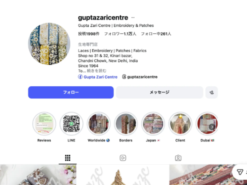 Gupta Zari Centerは、Instagramを主要なプラットフォームとして活用し、その美しい商品を世界に向けて発信しています。色鮮やかなサリーや、精緻なザリ刺繍が施されたレヘンガ、そして様々な素材や柄の生地が、まるで宝石のように輝く写真や動画で紹介されており、見ているだけでも心が躍ります。世界中のファッション愛好家や、インド文化に魅せられた人々が、Instagramを通じて彼らの作品に魅了されています。