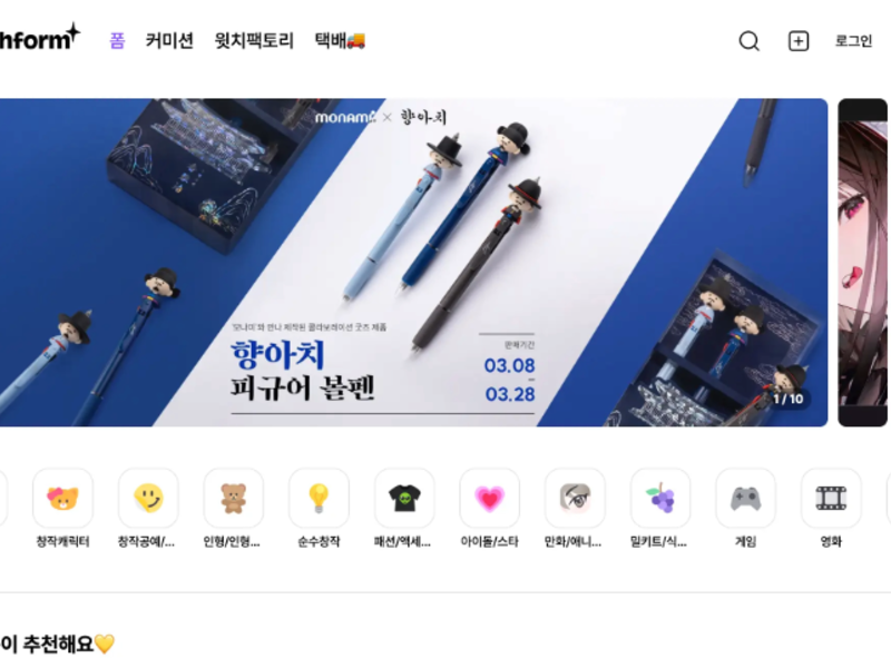 Witchform(ウィッチフォーム)は、韓国国内で若年層を中心に人気を集めているC2C(個人間取引)マーケットプレイスです。ユーザー同士が直接商品を出品・購入できるスタイルで、ファッション、アクセサリー、トレンドアイテムなどを気軽に売買できます。