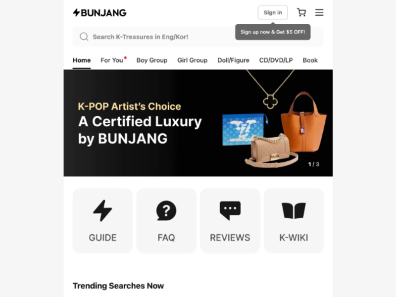 bunjang(ポンゲジャント)は、韓国国内で非常に人気のあるフリマアプリです。C2C(個人間取引)をベースに、K-POPグッズやファッション、コスメ、家電製品まで、幅広いジャンルの商品が出品されています。特に韓国アイドルの公式・非公式グッズや限定コラボ商品など、日本ではなかなか手に入らないアイテムも多く見つかります。