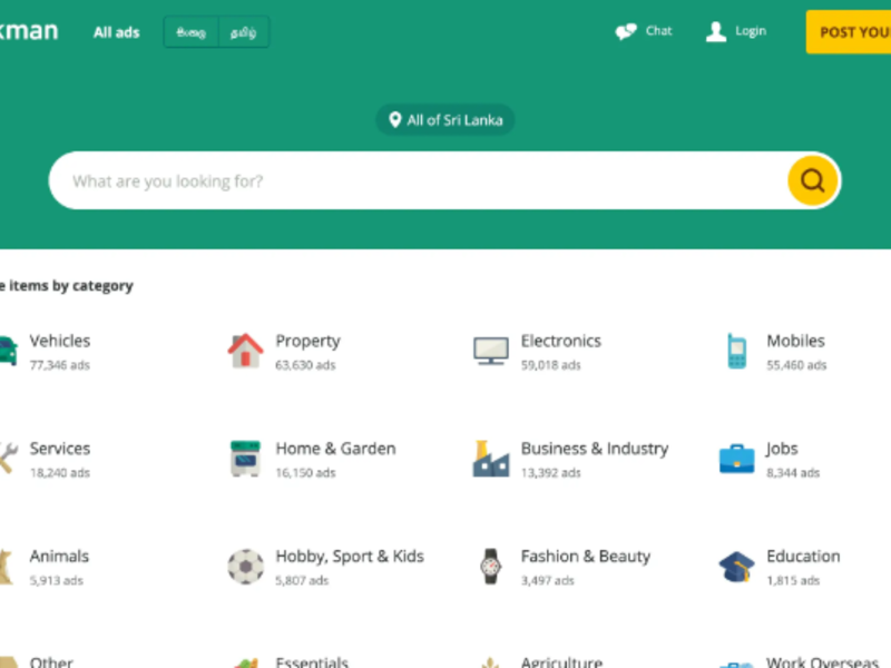 ikman(イクマン)は、スリランカで最大級のオンラインマーケットプレイス(フリマサイト)です。個人から企業まで、あらゆる人々が様々な商品を売買できるプラットフォームとして、スリランカ国内で広く利用されています。中古品から新品まで、多種多様な商品が出品されており、スリランカのリアルな市場の様子を垣間見ることができます。