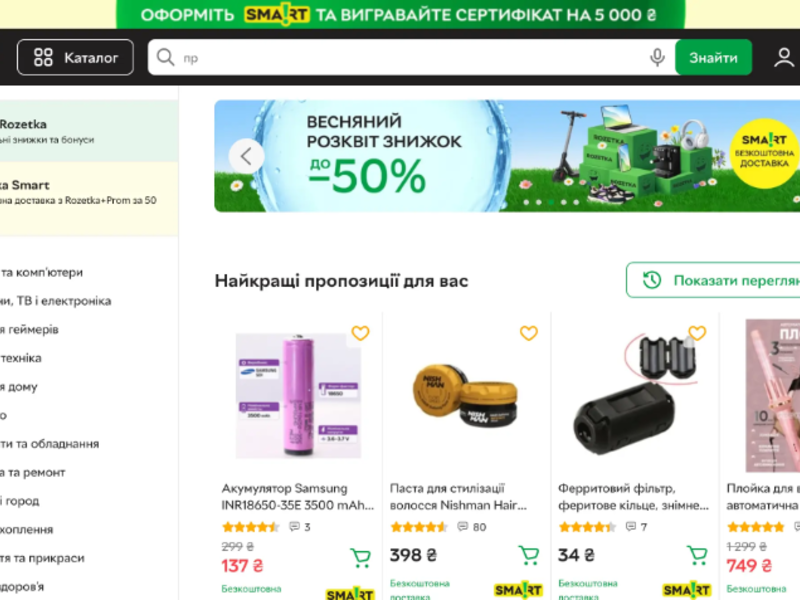 ROZETKAは、その圧倒的な商品数と利便性で、ウクライナの人々の生活に深く根ざしています。まるで日本の大手ECサイトのように、欲しいものがほぼ全て見つかるほどの品揃えが最大の魅力です。最新のガジェットから日常使いの消耗品、さらにはウクライナならではの特産品まで、幅広いニーズに応えることができます。